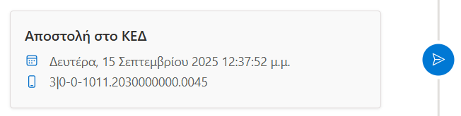 • Η κατάσταση  Αποστολή στο ΚΕΔ  υποδεικνύει την ημέρα και την ώρα που το παραστατικό προωθήθηκε στο ΚΕΔ.