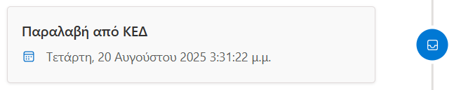 • Η κατάσταση  Παραλαβή από ΚΕΔ  υποδεικνύει την ημέρα και την ώρα που το ΚΕΔ έλαβε το παραστατικό.