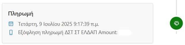 • Η κατάσταση Πληρωμή υποδεικνύει την ημέρα και την ώρα κατά την οποία η αναθέτουσα αρχή εξόφλησε το παραστατικό. Στο σχόλιο εμφανίζεται επίσης το ποσό που έχει καταβληθεί.