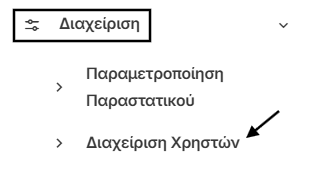 2) Από το κεντρικό μενού επιλέγετε "Διαχείριση" και στη συνέχεια "Διαχείριση Χρηστών".