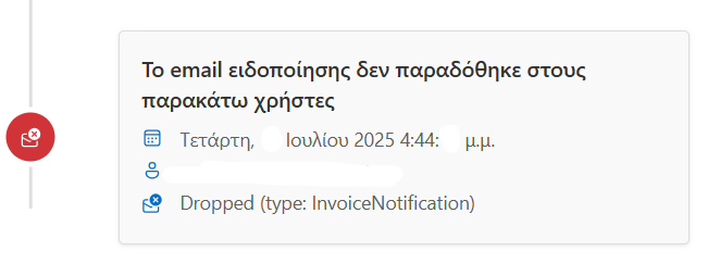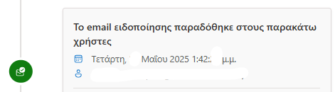 - Η κατάσταση Το email ειδοποίησης δεν παραδόθηκε στους παρακάτω χρήστες υποδεικνύει την ημέρα και την ώρα που πραγματοποιήθηκε ανεπιτυχής αποστολή του ειδοποιητικού email και σε ποια ταχυδρομική διεύθυνση