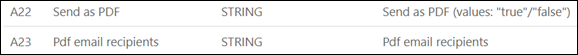 συμπληρώσετε τα πεδία Α22 με την τιμή true και το πεδίο Α23 με την διεύθυνση email του λήπτη του